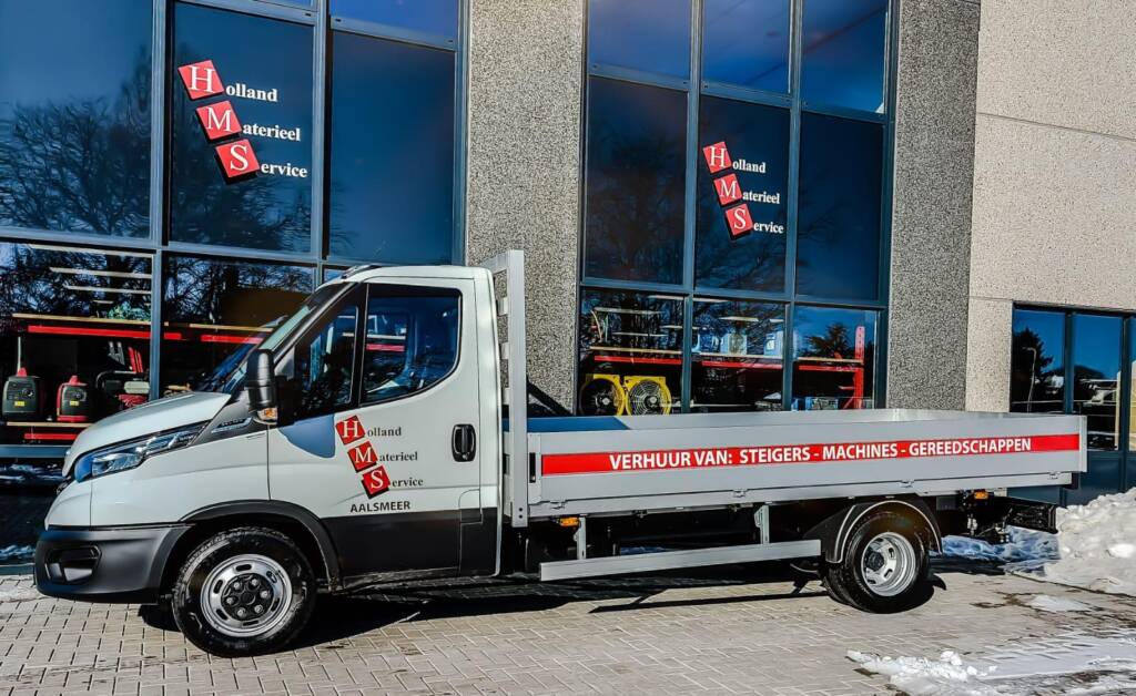 Holland Materieel Service Aalsmeer gunde ons de mooie opdracht om in een korte tijd een nieuw voertuig te leveren. Het bedrijf gevestigd in Aalsmeer is gespecialiseerd in het verhuren én leveren van professioneel materieel. Hun ‘oude’ Mitsubishi Canter had eigenaar Ron Maijenburg verkocht, daarom zocht hij in kort tijdsbestek een vervangende bedrijfsauto met een open laadbak. Het Iveco Daily chassis en de open aluminium laadbak werden beiden uit voorraad geleverd. In onze werkplaats hebben wij het geheel samengesteld en verzorgden wij de keuring RDW.