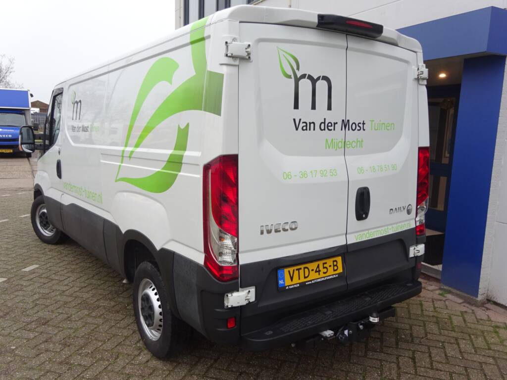 De ‘oude’ Daily van Van Der Most Tuinen begon nu wel wat ouder te worden. Met ruim 350.000 km op de klok overwoog de klant deze te gaan vervangen. Aan ons de opdracht om een passende vervangende bus te vinden. Binnen ons netwerk troffen we al snel een oplossing met een Iveco Daily 35S14 L2 H1. Na een proefrit in Mijdrecht, was de keuze weer snel gemaakt. Wij monteerden een trekhaak en een goede voedingskabel aan voor de kipper aanhangwagen van Van Der Most. De auto is voor aflevering voorzien van onderhoud en een nieuwe APK.