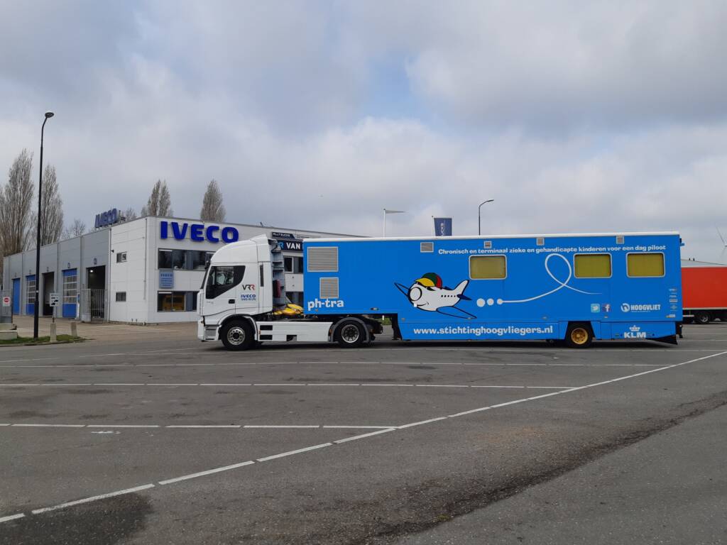 Wij blijven liever met beide benen op de grond (of nét iets daaronder in onze smeerput????) Maar voor de Stichting Hoogvliegers keurden wij hun trailer voor de jaarlijkse APK en melden deze met goedkeur af. Blij dat we op deze manier een klein steentje kunnen bijdragen aan de Stichting Hoogvliegers, de organisatie die zieke of gehandicapte kinderen een bijzonder en onvergetelijk avontuur laten beleven. Hoogvliegers doen er alles aan om het kind een dag bijzonder te laten zijn en hun zorgen voor even te ‘ontvliegen’ door een rondvlucht te maken in hun vliegtuigen of zelfs even zelf het vliegtuig te laten besturen! Meer weten over de Stichting Hoogvliegers en haar activiteiten, land dan op hun website www.stichtinghoogvliegers.nl Het is de moeite waard!